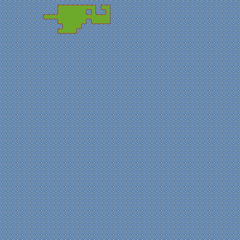 注意:左下角的洞看起来是洞,实际上是处于边界了,而填充区域无法与边界合成闭合区域,实际上将地图往外想想空一格就可以知道它并不是一个洞了。当然如果读者执意不允许这种情况发生,那么只需要在
